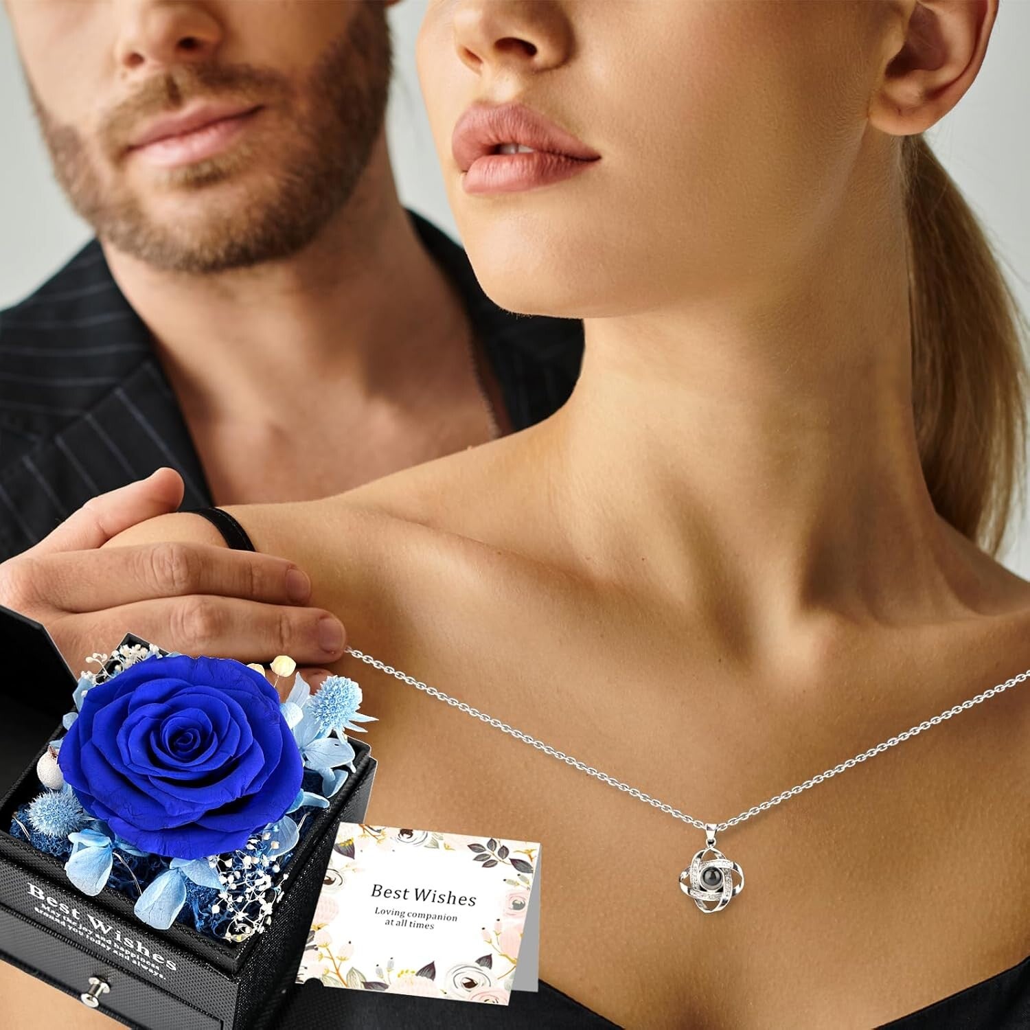 Ein Geschenk, das nicht verblüht: Die ewige Rose in Kombination mit der Halskette sorgt für langanhaltende Freude und bleibt eine bleibende Erinnerung an besondere Augenblicke.