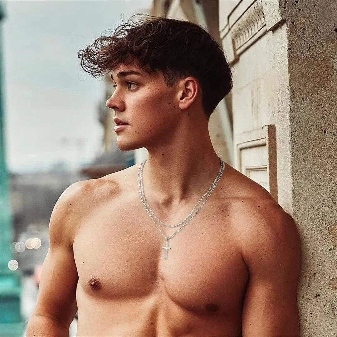 Figarokette aus 316L Edelstahl und 925 Sterling Silber Kreuz