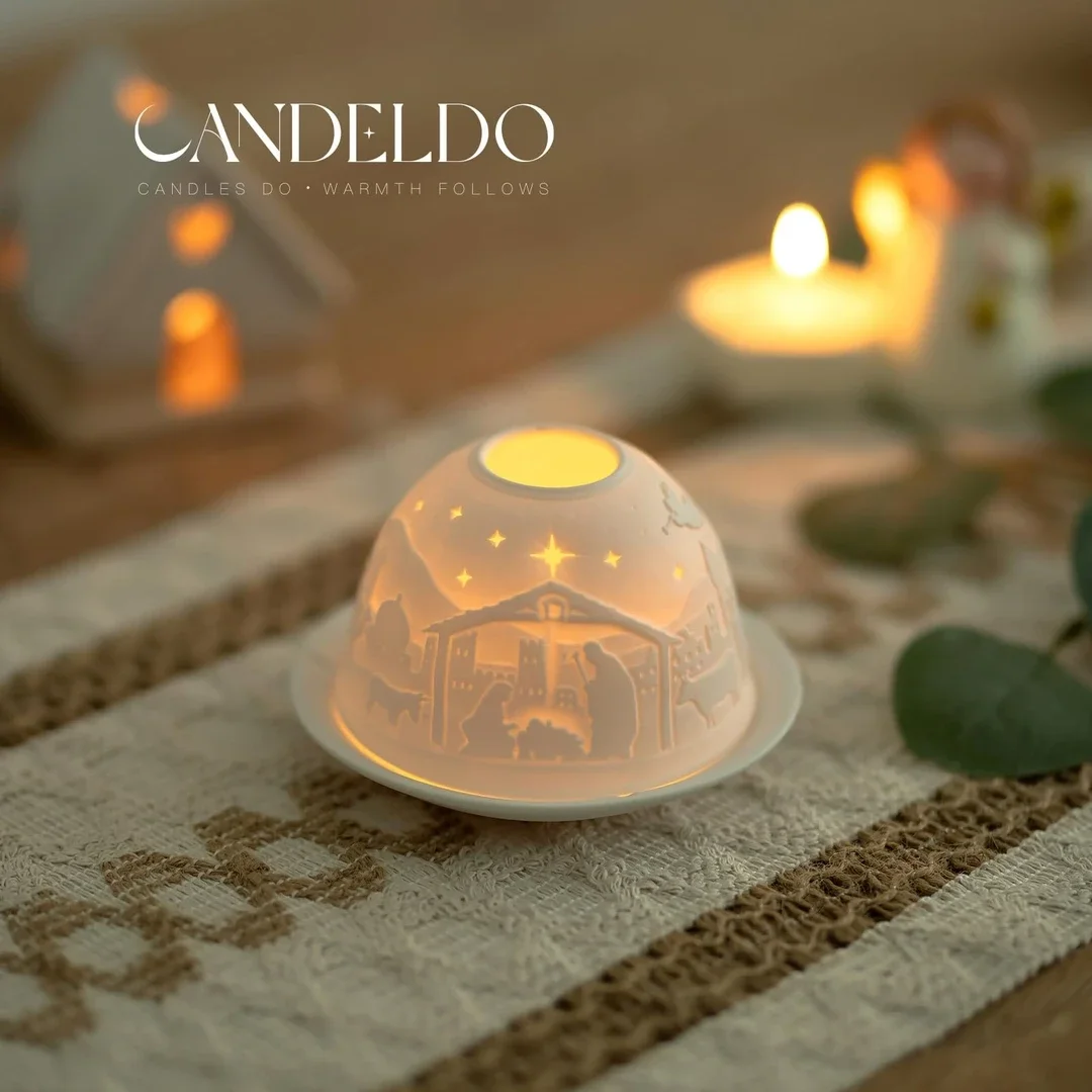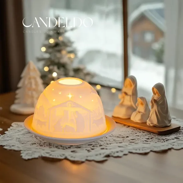 Lieferumfang: Dome-Light Porzellan-Windlicht Weihnachtskrippe, 1 Stück in Karton-Box