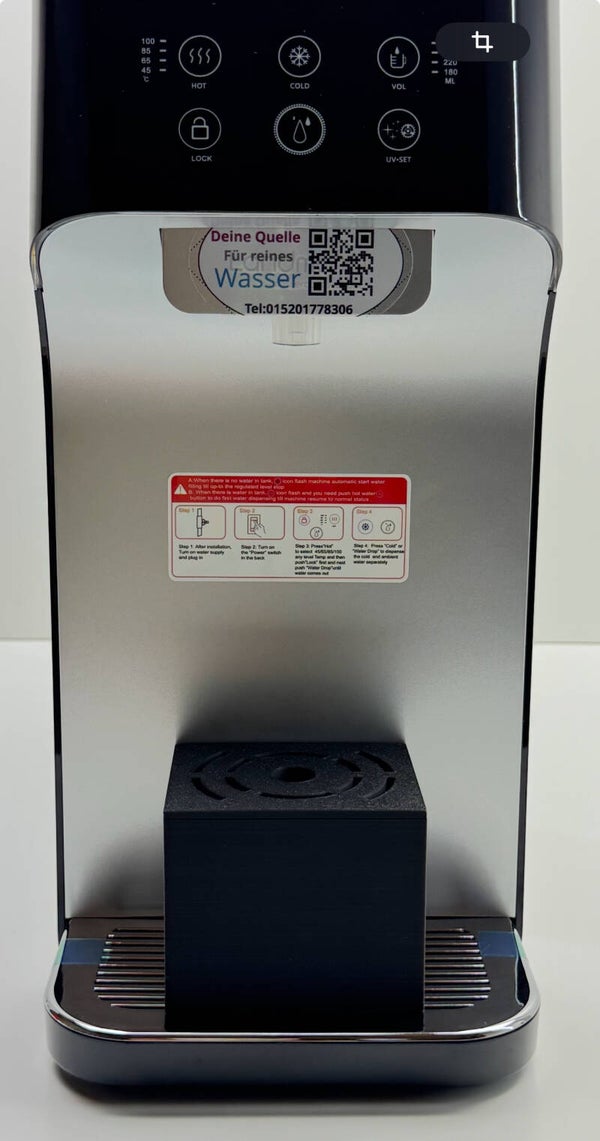 Dieses 3D-gedruckte Teil wurde aus Polylactid (PLA) hergestellt und ist ausschließlich als Erhöhung für den Wasserfilter im nicht-druckbelasteten und haushaltsüblichen Gebrauch vorgesehen.