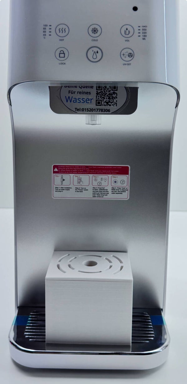 • Nicht für den direkten Kontakt mit Trinkwasser geeignet, da PLA nicht lebensmittelecht zertifiziert ist, es sei denn, das verwendete PLA-Material hat eine ausdrückliche Lebensmittelzulassung.