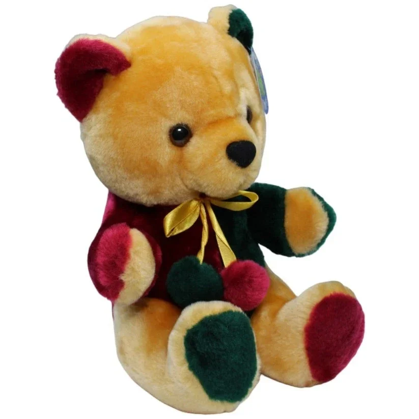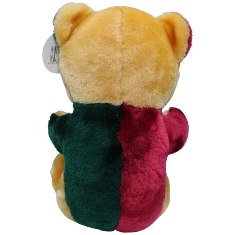 Der weiche Plüschstoff sorgt für ein angenehmes Gefühl beim Anfassen, während die mehrfarbige Gestaltung dem Bären einen fröhlichen Charakter verleiht.