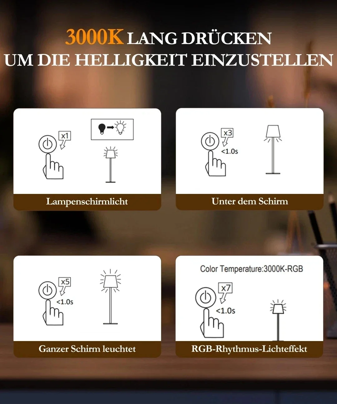 Funktionen: Touch-Steuerung, 3 Farbmodi, dimmbar