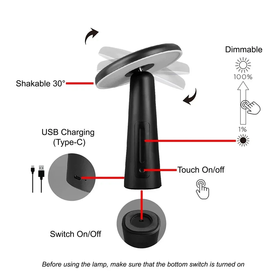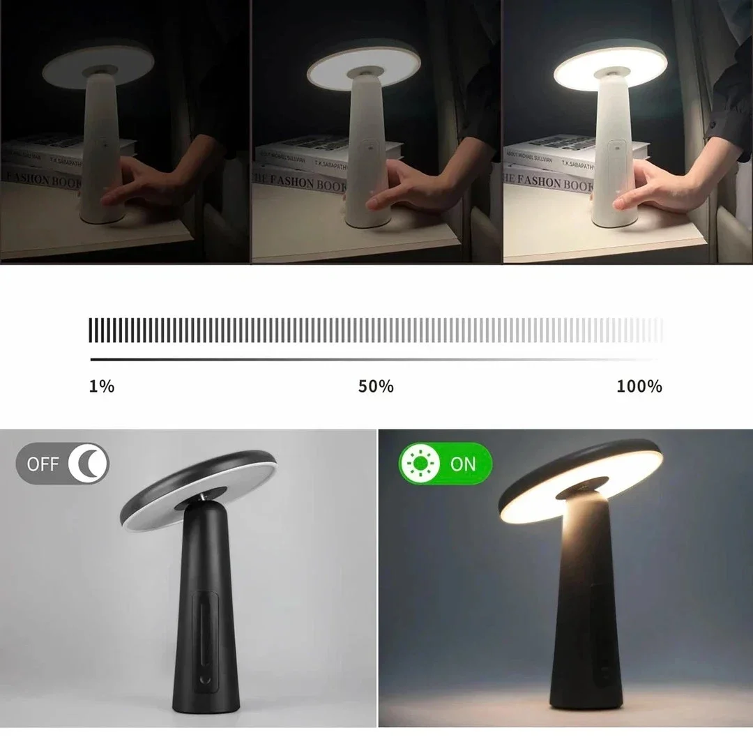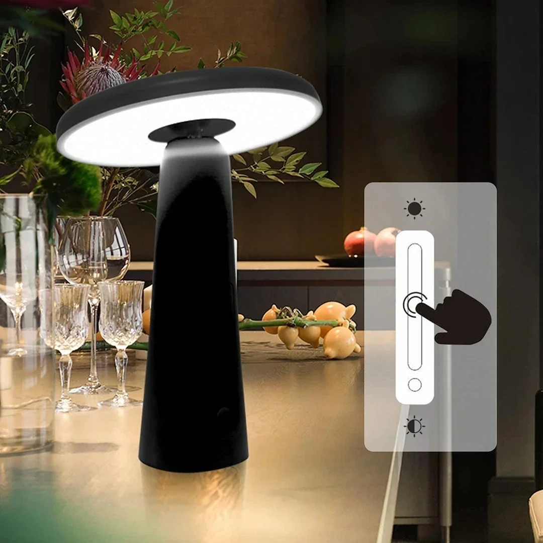 Kabellose, dimmbare LED-Tischlampe im Pilz-Design (USB, Touch, warmweiß)