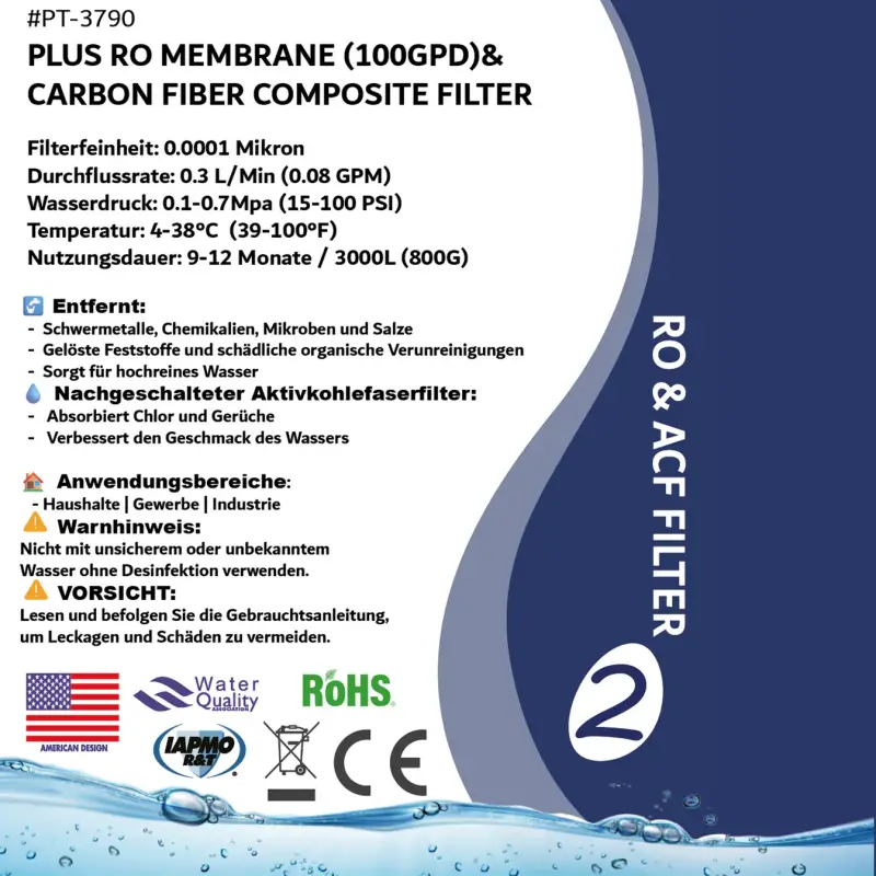 Kristallklare Reinheit: Mehrstufiges Filtersystem (Sediment- & Aktivkohlefilter + RO-Membran) entfernt zuverlässig Bakterien, Viren, Schwermetalle, Chlor und andere Schadstoffe – bis auf 0,0001 Mikrometer.