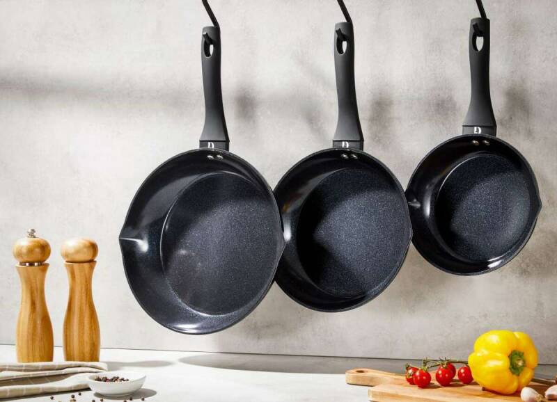 Das Set enthält eine Bratpfanne in elegantem Schwarz, die nicht nur optisch überzeugt, sondern auch durch ihre Langlebigkeit und einfache Handhabung. Perfekt geeignet für köstliche Gerichte und ein Genuss beim Kochen und Braten.